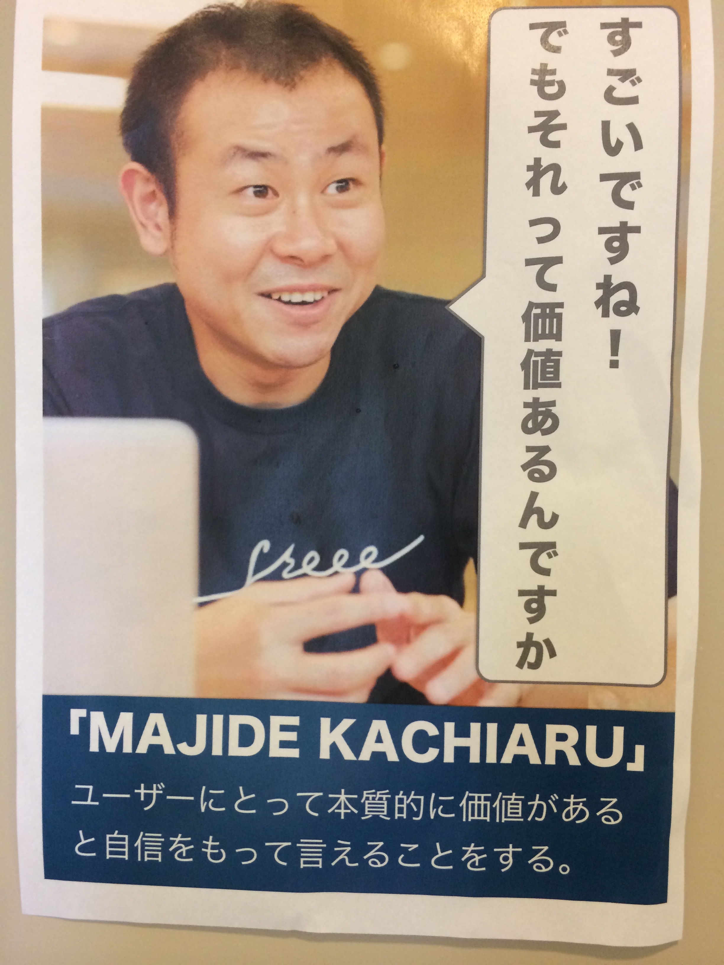 freeeはリリース前に、いろいろとポテンシャルユーザーにヒアリングしたが、「入力が速くできる会計ソフト」へのニーズはあるものの、「入力がいらない会計ソフト」に対してはイマイチ反応がよくなかった。心折れそうになりながらも、「本質的に価値がある」ということをよりどころに全自動のクラウド会計ソフト freee (フリー) としてリリースを敢行したことに大きな意味があった。この「マジで価値ある?」精神を忘れないようにしたい。(さらに略語でmajikachiというのもある)