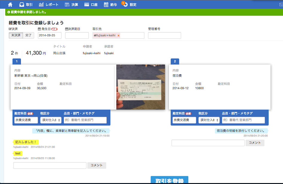 というようなプロセスであった。これをfreeeの経費精算機能を利用すれば、