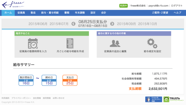 2014年10月にはクラウド給与計算ソフト freee の正式版をリリース。給与計算ソフトの非連続的な進化を実現した。開発にあたっては、エンジニア、マーケティング、カスタマーサポート等が一体となってチームをつくり、誰でも簡単に年末調整までこなすことができ、1クリックで給与計算から明細配布までができるプロダクトを世に出すことができた。
